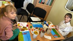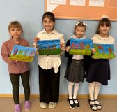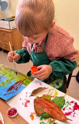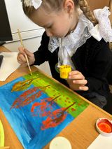 Обучающиеся объединения "Юные мастера" (рук. Ткаченко Е.В.) рисовали осенний пейзаж отпечатками листьев.