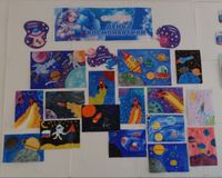 Обучающиеся объединений "ДЮП", "Юный краевед" и "Творческая мастерская" оформили выставку рисунков, посвященную "Дню космонавтики", лучшие из которых будут направлены на районный конкурс "Космические просторы"
